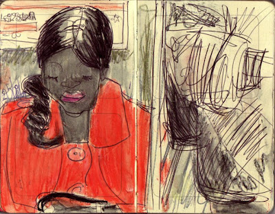 On the F, crowd by the seat on the door, they got off at Jay Street...